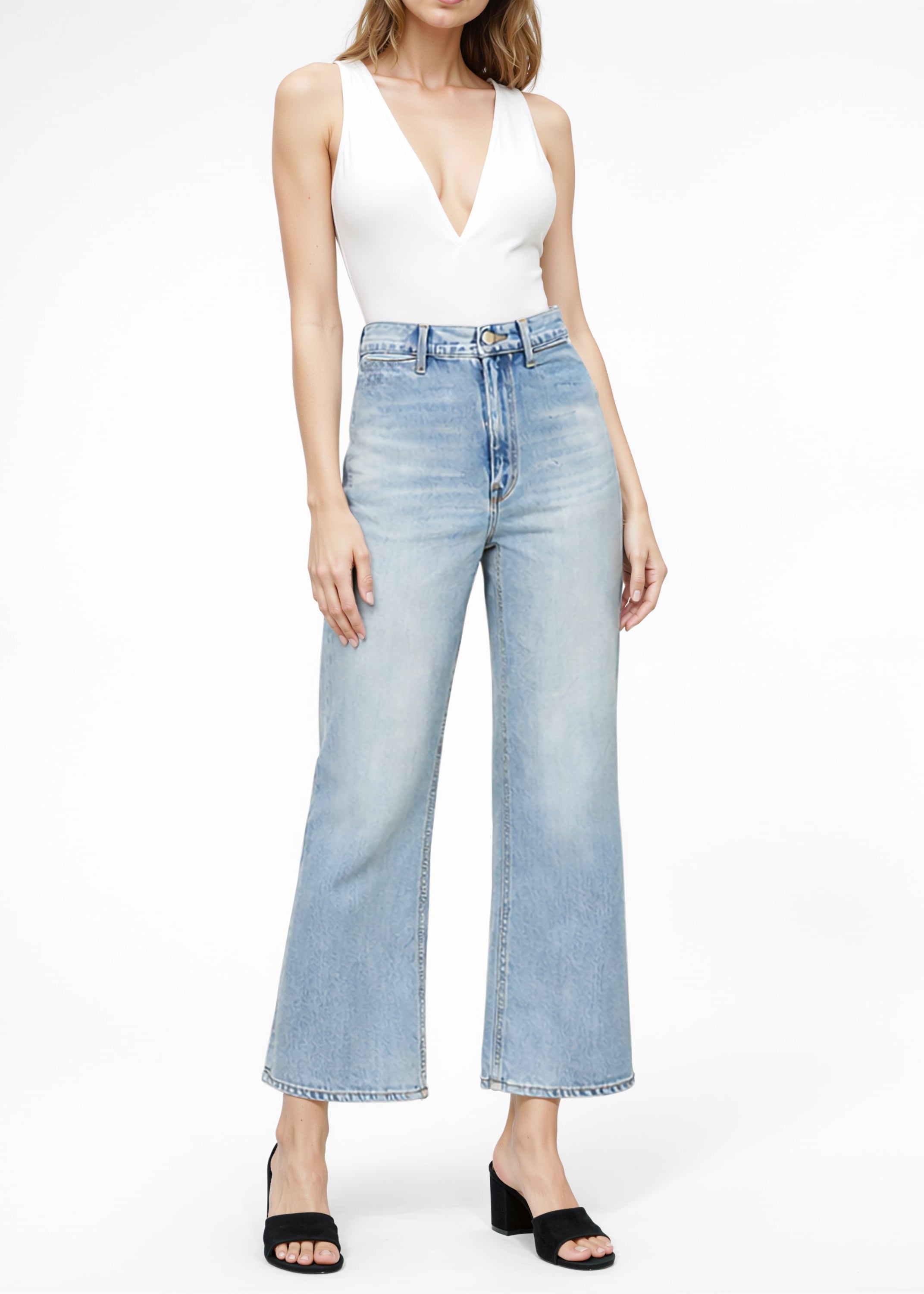 Contemporary relaxed style reimagined in a cropped wide-leg silhouette. These high-rise wide legs jeans offer the perfect balance of comfort and sophistication for your everyday wardrobe.